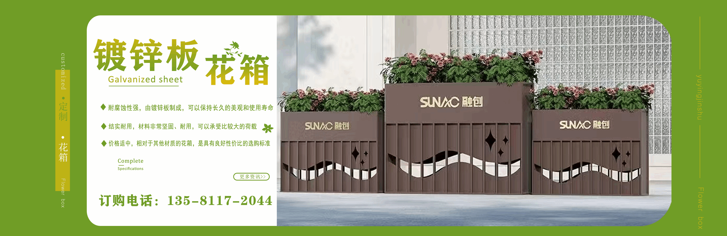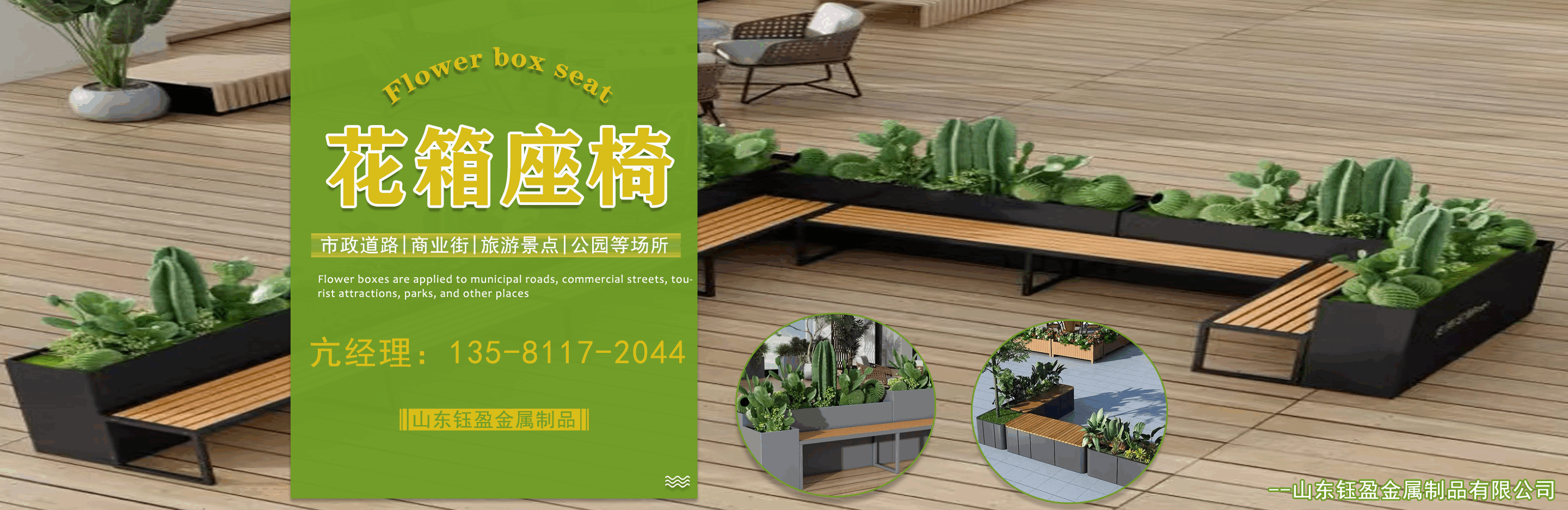 山東鈺盈金屬制品有限公司主營鍍鋅板花箱,道路隔斷花箱,定制花箱,戶外道路花箱,花箱座椅等產品,產品結構合理、性能優良,具有強度高、耐腐蝕、抗老化、隔熱隔音、節約能源、外形美觀、使用壽命長等優點,深受國內外客戶認可?! ∥覀兏鶕蛻羲诔鞘械奈幕卣鳎圃斐龇袭數爻鞘形幕瘹庀⒌淖匀涣Ⅲw、觀賞性強的花箱產品成為城市里一道靚麗的風景線?! 」緦嵭姓\實、公正、守信、價格合理、平等互利。 公司憑借雄厚經驗實力,恪守誠信為本的原則,得到了眾多客戶的信賴,并在業界獲得良好的口碑。建立了穩固的合作關系,隨著業務的不斷發展和壯大,合作伙伴的范圍也在不斷擴大。我們熱情盼望與您的合作,為社會的可持續發展獻上一份努力。...